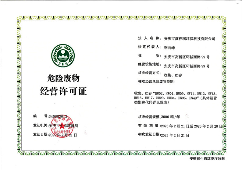 • 危廢收集、貯存(限安慶市范圍)