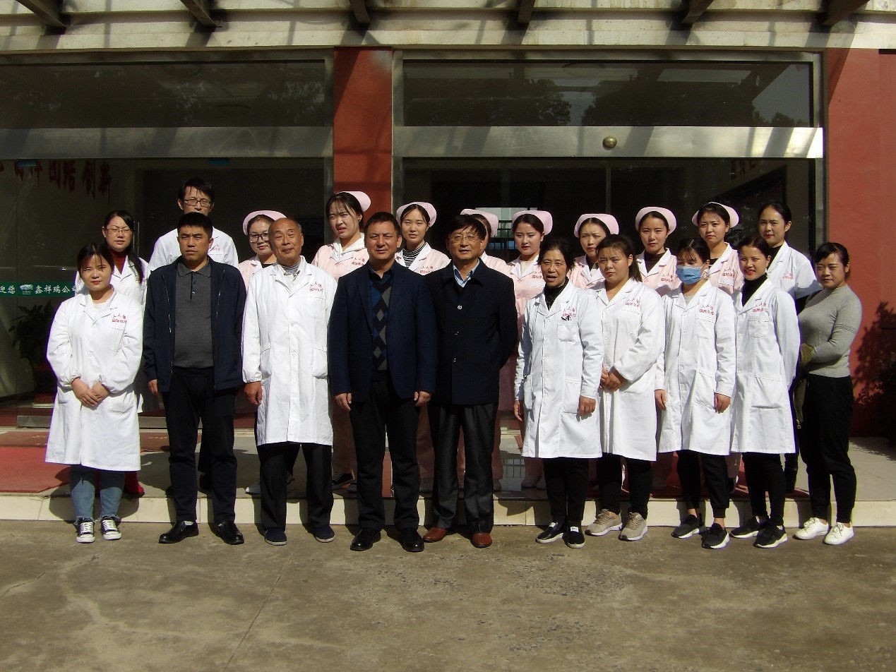 圖為:醫(yī)護(hù)人員與公司高管在鑫祥瑞辦公樓前合影